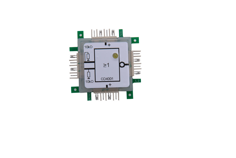 This gate realises a logical NOR connection with two inputs based on 1/4 CD4011. The inputs are connected with ground via a 10kΩ pulldown resistor. Supply voltage: +5..15V.